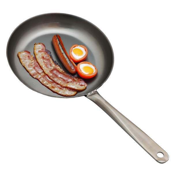 With use this cookware will become as non-stick as the most hi-tech coating available. Eventually your pan will attain a skin/coating that is entirely natural from the heat and oils used that form a protective layer that is bonded by the pores in the metal surface thus giving the pan that BLACK IRON look.
