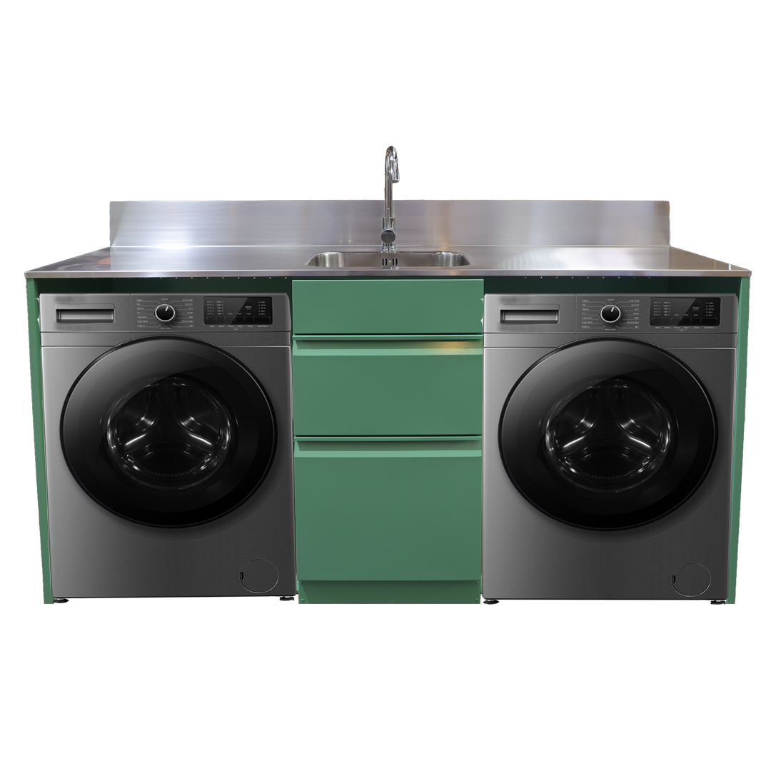 1785 wide Double front loader laundry Tub and cabinet in manfield green